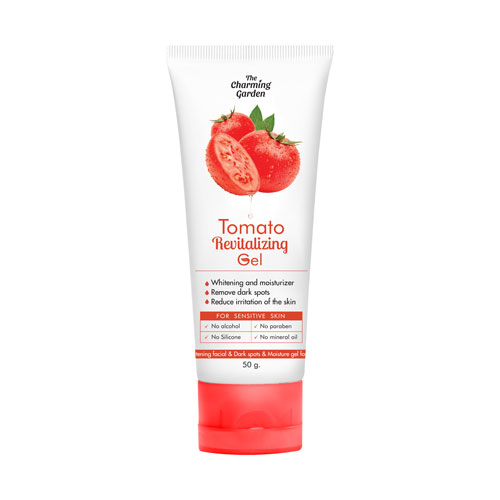The Charming Garden Tomato Revitalizing Gel 50g. A refreshing gel enriched with tomato extract to help hydrate and revitalize the skin. It helps improve skin softness and brightness while leaving the skin feeling smooth, refreshed, and healthy-looking.